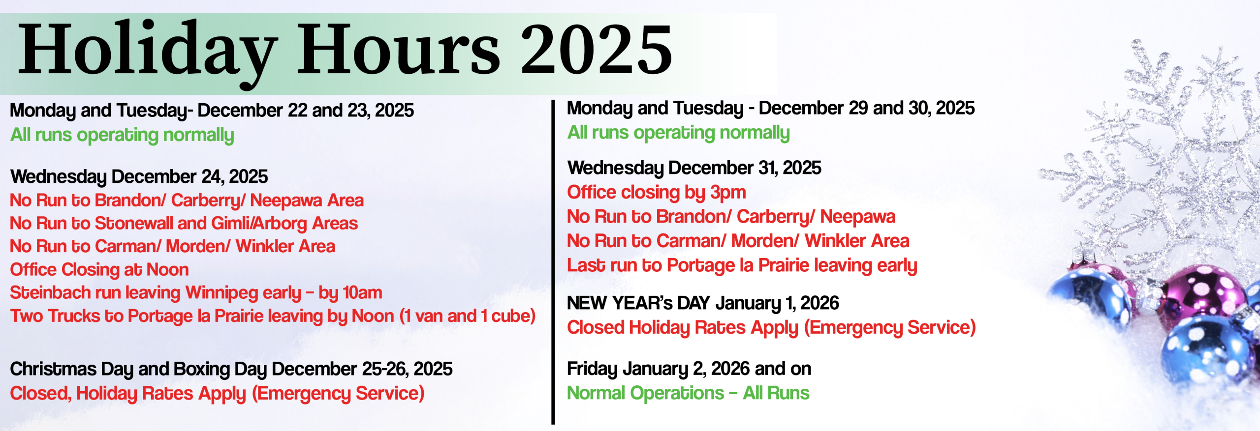 Same Day Carrier Between Winnipeg & Rural Manitoba